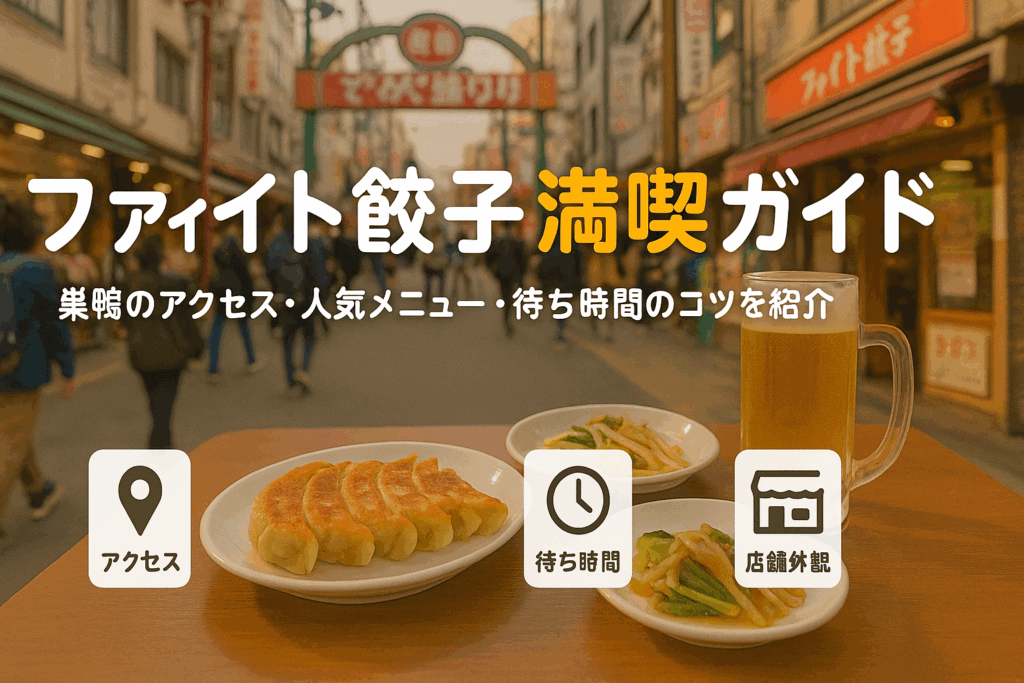 「ファイト餃子、気になるけど何を頼めばいい?混む時間は?」そんな不安をまとめて解消します。初めてでも迷わないよう、巣鴨駅からの最短ルートや周辺の目印、支払い方法や座席タイプまで具体的に案内。さらに、実食者の写真の見抜き方や再訪の有無に注目する口コミの読み方も整理します。